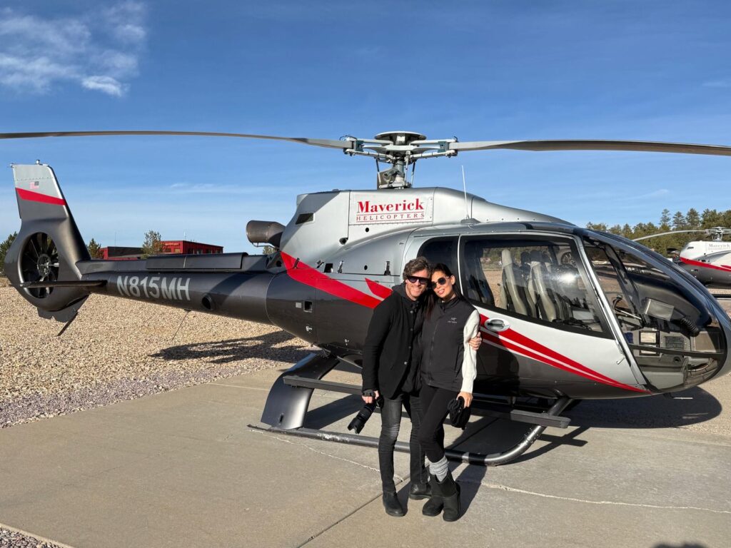 Once inside, you can stop at multiple iconic viewpoints such as Mather Point, Yavapai Point, and Desert View Watchtower for breathtaking panoramic views. One of the highlights of our trip was taking a helicopter tour with Maverick Helicopters over the Grand Canyon. Seeing the canyon from above gives you a completely different perspective—the scale, the depth, and the winding Colorado River are even more dramatic from the air. The first thing our pilot said was “yea once you see the Grand Canyon from the sky , you’re kind of ruined ” ! He’s not wrong!! We got in the helicopter , took off and then that “drop ” as you leave the pine forest and then the Grand Canyon comes into view will forever leave me breathless. I’ve seen a lot of remarkable places in my travels and the Grand Canyon will always be at the top… If you visit in winter, dress very warm in layers, including a heavy coat, gloves, and a hat ( I had all of this and STILL FROZE) temperatures can drop below freezing, especially in the mornings and evenings. We drove to each viewpoint I mentioned above and my mouth and face froze after ten minutes so I’m so grateful and happy to have seen the canyon from the helicopter. It’s a splurge but worth it !