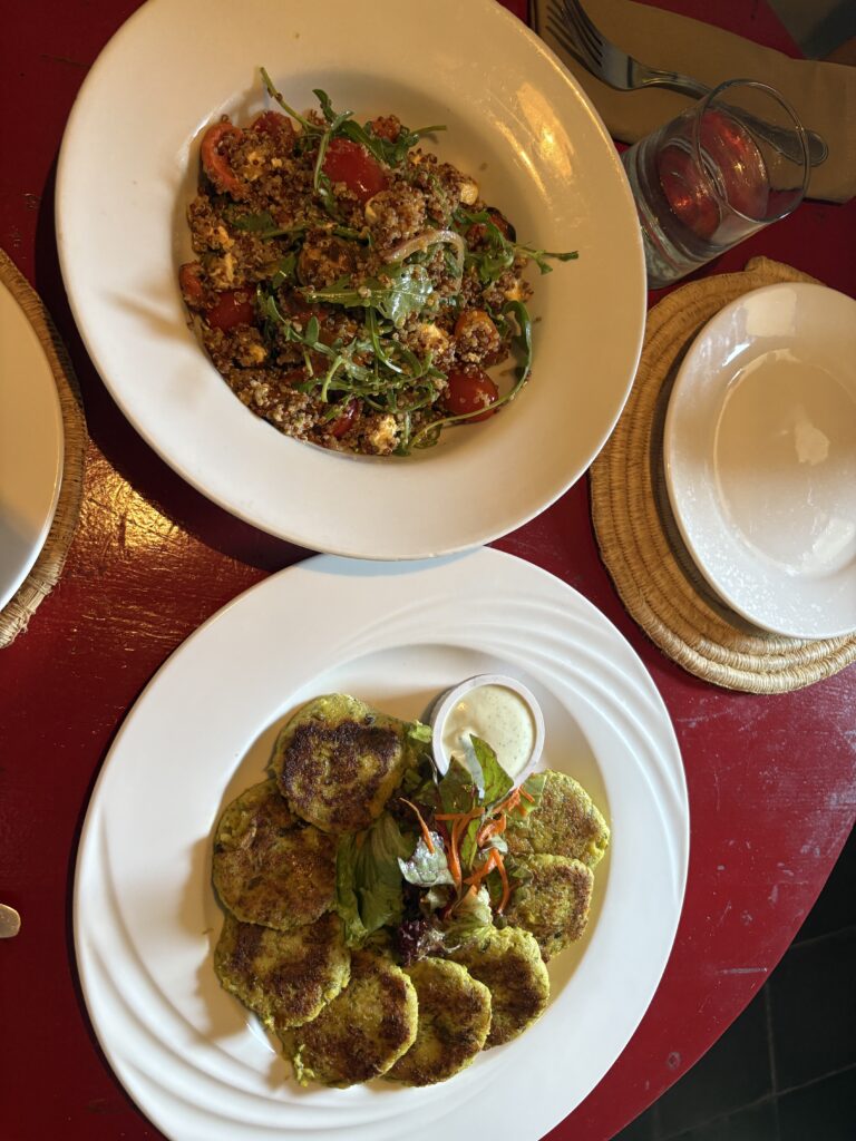 Dinner at Sahbi Sahbi in Marrakech felt like stepping into a world of refined warmth and feminine elegance. The soft lighting, handcrafted decor, and intimate atmosphere created the perfect setting for a romantic evening. Each dish was beautifully prepared in the tajin rooted in Moroccan tradition yet elevated with modern touches—making every bite feel sweet , savory and the perfect amount of spices. Sharing this meal with Alberto felt indulgent, slow, and deeply connected. We sat around the open kitchen and I think this is an excellent option for women – solo travelers and solo diners. Safe , and so inviting .