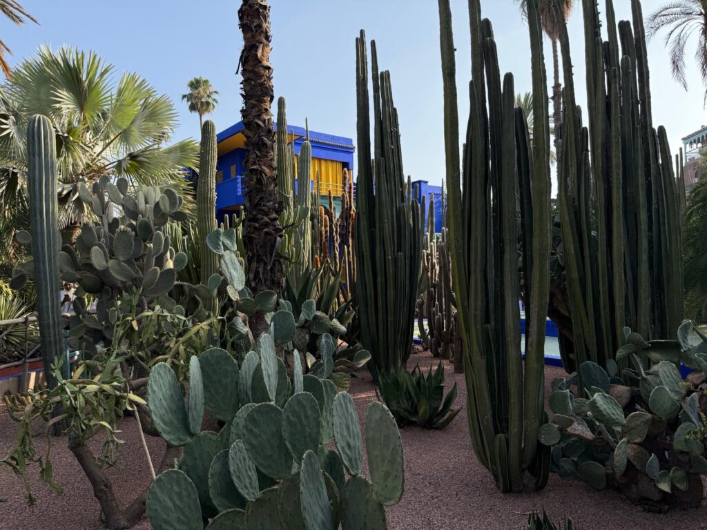 Visiting the YSL Jardin Majorelle in Marrakech was the most serene moment of our trip. We arrived right when they opened, and it was absolutely worth the early start — the gardens were calm, the paths quiet, and we had space to truly take in the vivid cobalt blue, exotic plants, and the artistic legacy of Yves Saint Laurent.  The soft morning light just makes everything feel even more magical. If you’re planning a visit, make a reservation online ahead of time; spots fill quickly, and timed entry keeps the experience peaceful. Wandering through this iconic garden in the cool morning air was the perfect way to begin our last day in Marrakech. We bought the BEST peppermint tea I’ve ever had in the gift shoppe and stayed for breakfast . Yes they have a cafe with a made to order hot breakfast and it’s delicious !